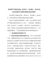 党员领导干部政治忠诚、政治定力、政治能力、政治生态、政治纪律等五方面政治素质自查自评报告党员领导干部政治忠诚、政治定力、政治能力、政治生态、政治纪律等五方面政治素质自查自评报告按照XX党委考评考核要求,对照《XXX领导班子和领导干部政治素质考察办法(试行)》具体规定,围绕政治忠诚、政治定力、政治能力、政治生态、政治纪律等五个方面,现将本人政治素质政治素质总体表现及不足、产生问题原因剖析、下步改进措施等自查自评情况报告如下。一、政治素质总体表现及不足(一)在政治忠诚方面的表现及不足。作为一名党员领导干部,我能够坚持把深入学习贯彻落实习近平新时代中国特色社会主义思想和习近平总书记对XX重要讲话指示...