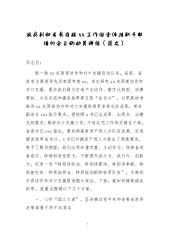 ·1政府副秘书长在驻xx工作组全体挂职干部培训会上的动员讲话(范文)同志们:新一轮xx东西部协作和对口支援启动以来,省委、省政府主要领导先后率团考察xx,多次研究xx东西部协作和对口支援,要求我们聚力打造产业协作、数字化转型、消费帮扶、文化交流和援派铁军等五张“金名片”,以更高标准推进xx东西部协作和对口支援取得更多标志性成果。常务副省长xxx批示要求,望按照x书记出成果、出亮点、出模式的要求,做好对口支援工作。干好这项工作的关键在干部,省委书记xxx指出,要发挥高素质干部人才队伍优势,打造援派铁军金名片。x书记对援派干部人才提出了很高要求,寄予了殷切期望,我们必须知重负重、主动作为,保持奋进...