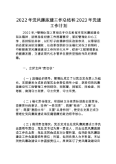 2022年党风廉政建工作总结和2023年党建工作计划