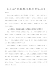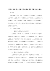 公司党支部2022年第一季度党风廉政建设和反腐败工作总结XX纪委:2022年第一季度,XXXX党支部坚持以习近平新时代中国特色社会主义思想为指导,深入学习贯彻十九届中央纪委六次全会精神,以学习教育为基础、以落实制度为保障,坚持挺纪在前、坚持抓早抓小,持之以恒落实中央八项规定精神,严格执行党风廉政建设责任。现将有关情况报告如下:一、工作开展情况(一)坚持理论提升,开展集中学习一是领导班子带头学。充分利用“第一议题”对习近平总书记重要讲话和全面从严治党重要论述、党内法规条例的学习;二是利用支委会、班子集中研讨等形式,及时跟进对党中央公布的反腐案例、理论文章的传达学习,组织观看警示教育片《零容忍》;...