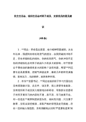 2024年度民主生活会征求的意见及建议(四个带头)6篇(一)带头严守政治纪律和政治规矩,维护党的团结统一方面(二)带头增强党性、严守纪律、砥砺作风方面(三)带头在遵规守纪、清正廉洁前提下勇于担责、敢于创新方面(四)带头履行全面从严治党政治责任方面第一篇带头严守政治纪律和政治规矩,维护党的团结统一。健全落实以学铸魂、以学增智、以学正风、以学促干长效机制,深刻领悟“两个确立”的决定性意义,坚决做到“两个维护”,自觉防止和反对个人主义、分散主义、自由主义、本位主义,自觉在思想上政治上行动上同以习近平同志为核心的党中央保持高度一致。肯定意见:一、政治立场坚定,纪律规矩严明班子及成员始终坚定政治立场,严...