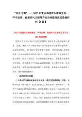 对照带头增强党性,严守纪律,砥砺作风等“四个带头方面”存在的问题、原因解析及今后整改措施、努力方向(14篇)供参考国企党委书记2025年带头严守政治纪律和政治规矩方面等“四个方面”个人对照检查材料按照上级党委关于开好2024年度党员领导干部民主生活会的要求,我紧扣“深入学习贯彻习近平新时代中国特色社会主义思想,巩固深化党纪学习教育成果,综合发挥党的纪律教育约束、保障激励作用,为进一步全面深化改革、推进中国式现代化提供坚强纪律保证”主题,结合企业实际,深入查找问题,认真进行对照检查。现将个人对照检查情况汇报如下:一、存在的主要问题(一)带头严守政治纪律和政治规矩方面一是政治站位不够高。对国有企业...