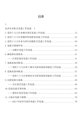 目录1.达州市直机关党建工作综述42.党的十九大以来城市基层党建工作综述...........................123.党的十八大以来赣州持续推进党建工作综述.......................224.党的十八大以来天津市加强机关党建工作综述.....................295.党旗引领谱华章...............................................34——安顺市党建工作综述......................................346.强基固本筑堡垒.............................