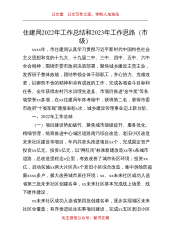 住建局2022年工作总结和2023年工作思路(市级)