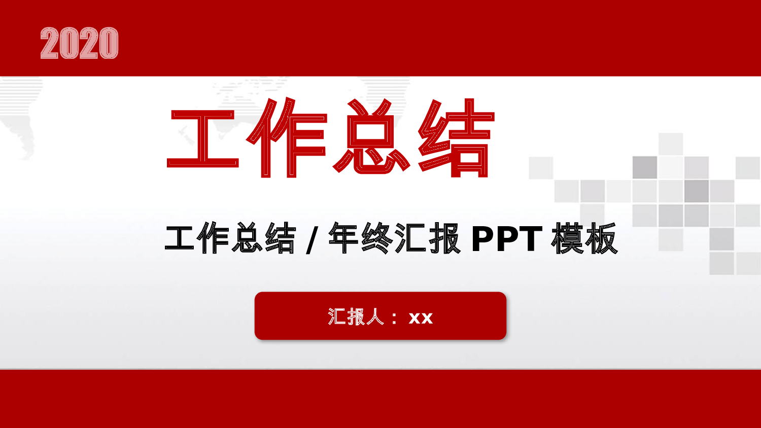 工作总结工作总结/年终汇报PPT模板汇报人:xx2020在全体同事的共同努力下,在领导的全面支持、关心下,…………通过扎扎实实的努力,圆满地完成了20xx年的工作。回顾这一年的工作,在取得成绩的同时,也发现了工作中的不足和问题…………前言目录CONTENTS年度工作概述01工作完成情况02工作成果展示03工作不足之处04下步工作计划05目录CONTENTS年度工作概述01工作完成情况02工作成果展示03工作不足之处04下步工作计划05年度工作概述1年度工作概述Part点击添加小标题点击添加小标题点击添加小标题点击添加小标题点击添加标题点击添加文本或复制文本自此点击添加文本或复制文本自此...