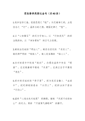 1金句金条汇编目录第一篇词组一、公文常用动词、名词、形容词、副词...6-7二、公文素材三字部词组.................7-9三、十组适合于局部小排比的三字词语.....9-10四、公文素材40类四字词组............10-15五、提高写作能力:掌握常用四字词组(60个)…15-16六、关于工作态度、定位、目标方式等的词语…................................16-19七、五字措施及成果类短句…............19-21八、六字措施类标题短句…..............21-22九、巡视工作词语集锦…....................