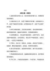 目录本期主题:抓落实1.选准抓落实的切入点,扭住抓落实的着力点,把握抓落实的突破点。2.从激活动力入手,攻坚“不愿落实”的问题;从鼓励担当入手,攻坚“不敢落实”的问题;从增强本领入手,攻坚“不会落实”的问题。3.科学决策抓落实,压实责任抓落实,强化督查抓落实、精准考核抓落实,激励担当抓落实,完善保障抓落实。4.在增强事业心、责任感中狠抓落实,在勇于担当、攻坚克难中狠抓落实,在求真务实、埋头苦干中狠抓落实,在持之以恒、一以贯之中狠抓落实。5.守初心,知行合一抓落实;担使命,真抓实干抓落实;找差距,聚焦问题抓落实;见实效,结果评价抓落实。6.亲力亲为抓落实,挺直标杆抓落实,敢于担当抓落实,扭住关键...