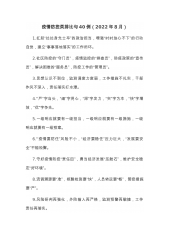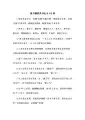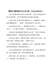 精彩比喻类排比句40例(20220830)1.运行的“磨合期”变成班子的“融合期”,岗位的“适应期”变成能力的“提升期”,班子的“稳定期”变成发展的“黄金期”。2.无坚不摧、坚韧不拔的“钢铁般”决心,愈挫愈奋、顽强不屈的“弹簧般”勇气,一鼓作气、誓不罢休的“钉子般”作风。3.政治坚定的“明白人”,服务群众的“贴心人”,干事创业的“带头人”,严以律己的“规矩人”,管党治党的“责任人”。4.民政部门是党委政府与群众的“连心桥”,民政工作是社会满意度的“晴雨表”,民政事业是经济社会发展的“压舱石”。5.视法纪为“雷池”,敬畏而不逾越;视声色犬马为“祸水”,鄙视而不染身;视钱物为“诱饵”,远离而不沾边...