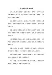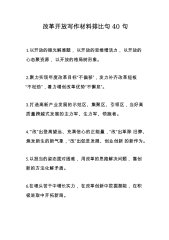 “心”字型有关排比句大全(40条)本期主题:“心”字型(二)1.“长风破浪会有时”的雄心壮志,“咬定青山不放松”的决心毅力,“衣带渐宽终不悔”的恒心意志。2.以一颗感恩心对待组织,以一颗进取心对待工作,以一颗平常心对待生活,以一颗友爱心对待同志。3.心中有民,锤炼为民务实清廉的作风;心中有责,锤炼担当负责进取的精神;心中有戒,锤炼讲规矩明底线的行为规范。4.一心向党、对党忠诚,一心为民、坚守初心,一心干事、扛牢使命,一心奉公、严以律己。5.只要企业遇到困难,就要心底无私地为企业“排雷”;只要企业发展需要,就要心清如水地为企业“站台”。6..心平气和,群众才能开心;心如磐石,群众才能安心;心口如...