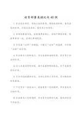 纪检工作类排比句40例1.树牢“精准、精确、精细”的“三精”工作理念,坚持“效率、效能、效果”的“三效”工作标准,深化“严肃、严格、严谨”的“三严”工作作风。2.从严治党必须纵深推进,决不能有丝毫停滞;拒腐防变必须警钟长鸣,决不能有丝毫放松;正风肃纪必须加大力度,决不能有丝毫手软。3.牢牢把握政治建设“生命线”,坚决扛起管党治党“千钧担”,织紧织密全面监督“防护网”,不断增强拒腐防变“免疫力”。4.不严惩不足以平民愤,不严惩不足以抚伤痕,不严惩不足以护尊严,不严惩不足以儆效尤,不严惩不足以树法威。5.筑牢思想上的“防火墙”,当好纪律上的“守门员”,念好道德上的“紧箍咒”,提升拒腐防变的“免疫力...