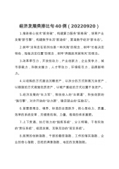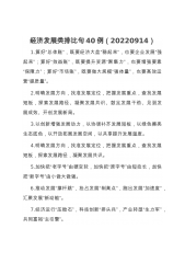 经济发展类排比句40例(20220920)1.推进核心技术“新突破”,构建算力服务“新格局”,培育产业发展“新引擎”,构建数字生活“新途径”,营造数字经济“新生态”。2.树牢“没有走在前列也是一种风险”的观念,树牢“长板决定特色,短板决定位置”的观念,树牢“奔跑起来就有风”的观念。3.改革牵引力,开放拉动力,产业创新力,企业竞争力,城市承载力,科教支撑力,人才带动力,环境吸引力,品牌影响力。4.以收购的方式激活沉睡资产,以拆分的方式剥离冗余资产,以嫁接的方式做强优质资产,以破产重组的方式处置不良资产。5.经济发展的“生力军”,税收收入的“主渠道”,科技创新的“强引擎”,对外开放的“动力源”,稳...