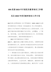 XXX党委2023年开展党员教育培训工作情况及2024年党员教育培训工作计划