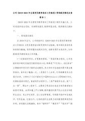 公司《2019-2023年全国党员教育培训工作规划》贯彻落实情况自查报告1《2019-2023年全国党员教育培训工作规划》制定实施以来,公司党组织结合实际,仔细贯彻落实,取得明显功效,现将情况汇报如下:一、贯彻落实情况自2019年至今,公司党组织以《2019-2023年全国党员教育培训工作规划》为党员教育培训的思想和行动指南,每年制定具体而具体的培训措施,保质保量完成规定动作,创新性展开自选动作,切实提高党员教育培训工作质量。(一)完善组织形式,扩宽教育渠道。一是组织集合培训。公司党组织每年制定实施党员教育培训计划,特殊是“不忘初心、切记使命”主题教育和党史学习教育活动期间,多次有针对性地组织...