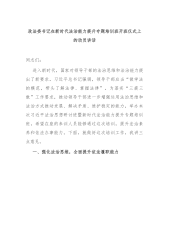 政法委书记在新时代法治能力提升专题培训班开班仪式上的动员讲话同志们:进入新时代,国家对领导干部的法治思维和法治能力提出了新要求。习近平总书记强调,领导干部应当“做学法的模范,带头了解法律、掌握法律”。为落实“三提三敢”工作要求,推动领导干部进一步增强运用法治思维和法治方式推动发展、解决矛盾、维护稳定的能力,举办本次习近平法治思想研讨班暨新时代法治能力提升专题培训班,希望在座的参训人员能够通过这次培训,提升法治素养和依法办事能力。下面,就做好这次培训工作,我讲三点意见。一、强化法治思维,全面提升依法履职能力领导干部是法治建设的重要组织者、推动者、实践者,作为领导干部,必须在法治轨道上想问题、作决...