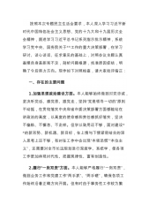 按照本次专题民主生活会要求,本人深入学习习近平新时代中国特色社会主义思想、党的十九大和十九届历次全会精神,跟进学习习近平总书记系列指示批示精神,系统学习党中央、国务院关于**工作的重大决策部署,在学习研讨、谈心谈话、征求意见的基础上,对照会议主题认真查摆自身差距和不足,剖析问题根源,找准原因症结,明确了今后努力方向。现作如下对照检查,请大家批评指正:一、存在的主要问题1.加强思想政治建设方面。本人能够始终做到对党忠诚,坚决听党话、感党恩、跟党走,坚持“党是领导一切的”原则不动摇,在贯彻落实中央和省市委决策部署方面都能站在讲政治的高度,以高度的使命感和责任感抓好落实,坚决不偏航、不懈怠、不走样...