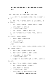 关于党员互相批评意见50条互相批评意见200条【六篇】党员互相批评意见50条互相批评意见200条篇11、业务学习不够。应加强业务知识的学习更新,更好地指导分管工作。2、进取心不足,有些工作仅限于听汇报,主动安排的少,被动应付的多。3、生活上艰苦奋斗精神不够,有时有吃请和公车私用现象。4、工作纪律坚持不够,有早退现象。对XX同志的批评意见21、工作上缺少进取、创新精神,满足于现状。2、习惯于当"甩手掌柜",分管工作指导不够,抓的不细。如:文书把关不严,有时有出错的现象。3、有时碍于情面有参加宴请的现象。4、也存在公车私用现象。对XX同志的批评意见31、业务学习不足。应加强业务知识尤其是计算机知识...