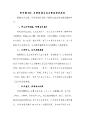 尊敬的xx组长、同志们:为检验党史学习教育成果,按照公司党委关于开好基层党组织组织生活会工作计划安排,经报公司党委批准同意,今天我支部召开2021年组织生活会,本次应到会x人,实到会x人。公司党委对我支部本次组织生活会高度重视,派出党史学习教育第二督导组组长xx参加会议,体现了公司党委对我支部工作及党员的关怀。我提议,让我们用热烈的掌声对xx组长的到来表示欢迎。xx组长政治站位高,视野开阔,党务知识扎实,博学多才,是公司资深党务工作专家,曾多次获得过省委组织部授予的优秀党务工作者称号,借此机会,也希望xx组长能够对我支部党建及党风廉政建设工作“诊断号脉”,多提宝贵的批评意见。本次组织生活会的主...