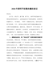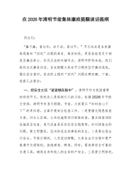 在镇2026年清明节期间森林防灭火工作部署会上的讲话同志们:今天,我们在这里召开全镇2026年清明节期间森林防灭火工作部署会,主要任务是深入分析当前我镇面临的森林防灭火严峻形势,对清明节这一关键时期的重点工作进行再动员、再部署、再落实。刚才传达了上级关于森林防灭火工作的最新指示精神,并结合我镇实际,对具体工作作出了全面细致的安排,我都完全同意,希望大家认真领会,坚决抓好贯彻落实。本次会议,我们还对“三合一”场所消防安全整治、电动车停放充电安全、汛前安全生产大检查等几项重点安全工作一并进行了部署,这充分体现了镇党委、政府统筹发展和安全的决心。下面,我再强调三点意见。一、认清形势,提高站位,深刻把握森林防灭火工作的极端重要性森林防灭火工作,事关人民群众生命财产安全,事关生态安全,事关全镇经济社会...