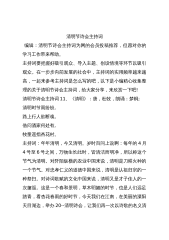 清明节诗会主持词编辑:清明节诗会主持词为网的会员投稿推荐,但愿对你的学习工作带来帮助。主持词要把握好吸引观众、导入主题、创设情境等环节以吸引观众。在一步步向前发展的社会中,主持词的实用频率越来越高,一起来参考主持词是怎么写的吧,以下是小编精心收集整理的关于清明节诗会主持词,给大家分享,来欣赏一下吧!清明节诗会主持词11、《清明》:唐,杜牧,朗诵:梦桐;清明时节雨纷纷,路上行人欲断魂。借问酒家何处有,牧童遥指杏花村。主持词:年年清明,今又清明。岁时百问上说啊:每年的4月4号至6号之间,万物生长此时,皆清洁而明净,所以称这个节气为清明。对阡陌纵横的农业中国来说,清明是刀耕火种的一个节气。对忠孝仁义...
