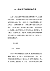 2022年全镇清明节祭扫工作方案为切实做好2022年清明节文明祭扫和安全保障工作,传承弘扬优秀中华文化,巩固疫情防控成果,实现文明祭扫、平安清明目标。结合我镇实际,制定本方案。一、工作目标坚持以XJP新时代中国特色社会主义思想为指导,深入贯彻民政部关于2022年清明节祭扫工作电视电话会议精神和省、市有关疫情防控文件精神,围绕优化防控举措,在“外防输入、内防反弹”科学精准防控疫情的基础上,满足群众清明节祭扫需求,做好祭扫活动的宣传引导、安全保障工作。通过网络祭祀、鲜花祭祀等健康、安全、文明低碳的祭祀方式缅怀逝者,树立文明节俭的殡葬新风尚,从实地实物祭扫转到对逝者的精神文化传承上来,确保祭扫活动安...