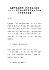 以学铸魂强党性,踔厉奋发启新程——2025年上半年国有企业深入贯彻学习教育专题党课