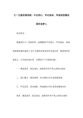 在xx市庆祝中国共产党成立104周年暨“七一”表彰大会上的主持词同志们:今天,我们在这里隆重举行xx市庆祝中国共产党成立104周年暨“七一”表彰大会,主要目的是:全面贯彻习近平新时代中国特色社会主义思想,深入贯彻落实党的二十大精神和习近平总书记视察xx重要讲话精神,全面落实党中央和习近平总书记对全体党员的号召要求,牢记初心使命,坚定理想信念,践行党的宗旨,共同回顾我们党104年奋斗的光辉历程,激励全市共产党员和我市人民群众在新征程上以史为鉴、开创未来,为谱写中国式现代化xx实践新篇章打下坚实基础。今天的大会共六项议程,下面依次进行:……......同志们,刚才,x书记给我们作了重要讲话,吴书记的讲话,对加强和改进新时期党的建设,促进我市经济社会更快更好的发展提出了新的更高要求,作出了具体部署...