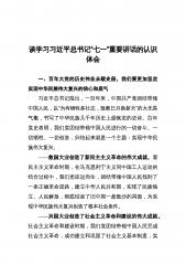 谈学习习近平总书记“七一”重要讲话的认识体会一、百年大党的历史伟业永载史册,我们要更加坚定实现中华民族伟大复兴的信心和底气习近平总书记指出,一百年来,中国共产党团结带领中国人民,以“为有牺牲多壮志,敢教日月换新天”的大无畏气概,书写了中华民族几千年历史上最恢宏的史诗。百年党史表明,我们党团结带领中国人民进行的一切奋斗、一切牺牲、一切创造,归结起来就是一个主题:实现中华民族伟大复兴。——救国大业创造了新民主主义革命的伟大成就。新民主主义革命时期,在马克思列宁主义同中国工人运动的结合过程中,我们党应运而生,团结带领中国人民找到了一条正确革命道路,建立中华人民共和国,实现了民族独立、人民解放,彻底结...