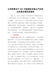 公司党委关于2021年度落实全面从严治党主体责任情况的报告.Doc