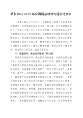 2025年发改部门党组书记在理论学习中心组会上学习2025年全国两会精神的研讨发言材料范文
