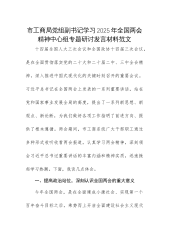 市发改局党组书记在理论学习中心组会上学习2025年全国两会精神的研讨发言材料3月5日至11日,十四届全国人大三次会议和全国政协十四届三次会议在京胜利召开。这次全国两会,是在我国全面建成小康社会、迈上全面建设社会主义现代化国家新征程的关键时期召开的一次重要会议,对于动员全党全国各族人民更加紧密地团结在以习近平同志为核心的党中央周围,高举中国特色社会主义伟大旗帜,全面贯彻习近平新时代中国特色社会主义思想,贯彻落实党的二十大和二十届二中、三中全会精神,扎实推进中国式现代化,具有重大而深远的意义。这次全国两会是在我国发展进入战略机遇和风险挑战并存、不确定难预料因素增多的时期召开的一次重要会议会议期间,...