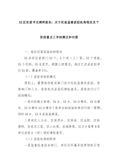XX区纪委书记调研报告:关于纪检监察派驻机构现状及下阶段重点工作的建议和对策一、我区纪委派驻机构现状XX共有区直部门XX个,X个党(工)委,XX个党组,XX个支部,XX名党员。根据上级要求,我区已完成派驻单位XX家,覆盖率X%。(一)派驻采取的模式原则上,重要政府组成部门实行纪检监察双派驻,党委部门和人大、政协机关派驻纪律检查员。具体实行以下派驻模式:一是对区教文体局、XX乡、XX乡、XX办事处、XX办事处、XX办事处XX办事处7家单位的派驻机构实行统一管理,同时XX乡、XX乡派驻监察室。二是向区人大办、区政府办、区政协、区法院、区检察院、区机关工委、区人社局、区城管局、区卫计委等9家单位派驻...