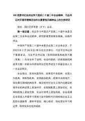 XX党委书记在传达学习党的二十届二中全会精神、习总书记对开展学雷锋活动作出重要指示精神会上的主持讲话现在,我们召开常委(扩大)会议。第一项议题,传达学习中国共产党第二十届中央委员会第二次全体会议精神,研究部署贯彻落实措施。由我作传达。中国共产党第二十届中央委员会第二次全体会议,于2023年2月26日至28日在北京举行。习近平总书记作了重要讲话。习近平总书记就《党和国家机构改革方案(草案)》向全会作了说明。全会同意把《党和国家机构改革方案》的部分内容按照法定程序提交十四届全国人大一次会议审议。全会指出,坚持问题导向,统筹党中央机构、全国人大机构、国务院机构、全国政协机构,统筹中央和地方,深化重点...