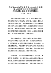 马兴瑞在自治区党委政法工作会议上强调深入学习贯彻习近平法治思想依法治疆全面推进法治新疆建设2022年2月11日自治区党委政法工作会议2月11日在乌鲁木齐召开。自治区党委书记马兴瑞出席会议并讲话。他强调,要深入学习贯彻习近平法治思想,贯彻落实中央政法工作会议精神特别是习近平总书记重要指示精神,完整准确贯彻新时代党的治疆方略,牢牢扭住社会稳定和长治久安总目标,把全面依法治国的要求落实到新疆工作各个领域,全面推进法治新疆建设,以实际行动迎接党的二十大胜利召开。自治区党委副书记、自治区主席艾尔肯·吐尼亚孜主持。自治区人大常委会主任肖开提·依明,自治区政协主席努尔兰·阿不都满金,自治区党委副书记张春林、...