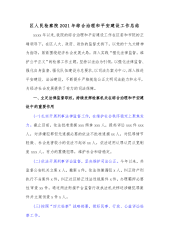 区人民检察院2021年综合治理和平安建设工作总结xxxx年以来,我院的综合治理和平安建设工作在区委和市院的正确领导下,在区人大、政府、政协的监督支持下,以党的十九大精神为指导,紧紧围绕经济社会发展大局,深入实践“强化法律监督,维护公平正义”的检察工作主题,坚持以法治为引领,以强化法律监督、强化自身监督、强化队伍建设为总要求,以司法办案为中心,深入推进平安建设、法治建设,不断提升严格规范公正文明司法能力和水平,为经济社会发展提供了有力的司法保障。一、立足法律监督职权,持续发挥检察机关在综合治理和平安建设中的重要作用(一)扎实开展刑事法律监督工作,在维护社会秩序稳定上聚焦发力。截止目前,依法批准逮...