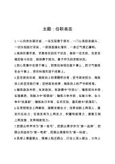 党委换届相关素材汇编目录一、领导讲话市县乡换届工作会议讲话.......................................3领导班子换届集体谈话会讲话...............................14换届新任领导干部任职前集体谈话会讲话...............21二、表态发言换届新任职领导干部表态发言1..........................30换届新任职领导干部表态发言2........................32换届新任职领导干部表态发言3........................34做好换届工作表态发言1..............