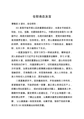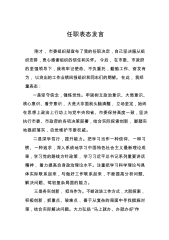 任职表态发言尊敬的各位领导,同志们:刚才宣布了我的任职命令,我坚决服从,衷心感谢组织的关心信任,感谢支队党委对我的支持和厚爱,这次任职对我来说不仅是鼓励和认可,更是责任和鞭策,是挑战和考验。我将把今天作为一个新的起点,继续尽心竭力、勤勉工作,夙夜在公、不负重托,把组织的信任信赖化为尽心履职的源动力,扎扎实实学、老老实实做、踏踏实实干,努力做好以下4个方面:一是勤学苦练,为自己施肥培土。我将以归零的心态、学生的姿态,切实加强学习,始终把学习作为增强素质和提升能力的重要途径,既要学理论,又要学业务,既要学有字书,又要学无字书,向实践学,向身边的各位领导和同志们学,以学益智、以学修身、以学增干、以干...