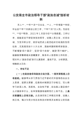 公安局全市政法领导干部“政治忠诚”剖析材料本人**,**年**月**日出生,**人,**年考取**学校,毕业后**年**月参加公安工作,**年**月*日入党。先后在**、**任**职务,2021年1月至今任**分局政委。工作以来,我能坚定不移坚持党的领导,站稳人民立场,对党忠诚,为党尽职分忧,较好地完成上级党组织交给我的各项任务,尤其是党的十八大以来,我始终旗帜鲜明讲政治,不断增强“四个意识”,坚定“四个自信”,做到“两个维护”。根据教育整顿相关部署要求,联系本人思想和工作实际,现对本人“政治忠诚”进行认真剖析,查找不足、分析原因、明确努力方向:一、存在不足(一)在政治信仰和政治立场方面。一是...