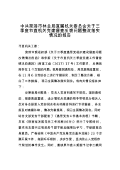 中共商洛市林业局直属机关委员会关于三季度市直机关党建督查反馈问题整改落实情况的报告市直机关工委:按照市委组织部《关于三季度基层党组织建设督查问题反馈情况的函》和你委《关于市直机关三季度党建工作督查情况的通报》(商直工函〔2017〕17号)文件要求,反馈我局存在1个方面的问题。我局接到通知后,局党委高度重视,在11月6日党组会上进行专题研究,制定了整改方案,细化了工作措施,现已全面整改落实到位。将有关情况报告如下:反馈我局问题是:党员入党材料填写不规范。接到通知后,局委高度重视,由分管机关党建的领导带领党办相关人员对各支部新入党的同志有关档案资料进行专项督查,各支部及时查漏补缺,整改完善提高,现...