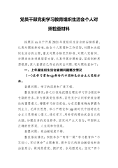 2021年党史学习教育组织生活会个人对照检查材料XXXX(2022年01月)为深入学习贯彻党的十九届六中全会精神,不断推进党的建设伟大工程,按照《……关于召开2021年度基层党组织组织生活会和开展民主评议党员的通知》(……〔2021〕……号)精神和要求,我在认真学习理论知识的基础上,对对照新时代合格党员标准,对照入党誓词,对照革命先辈,对照廖俊波、孙丽美、潘东升等先进典型,联系实际进行党性分析,主要看“四个是否坚定,四个强不强”,即理想信念是否坚定、“四个自信”强不强,看对党忠诚是否坚定、“两个维护”强不强,看责任担当是否坚定、斗争精神强不强,看自我革命是否坚定、自我净化、自我完善、自我革新、...