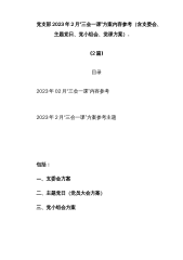 (2篇)党支部2023年2月“三会一课”方案内容参考(含支委会、主题党日、党小组会、党课方案)