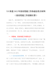 XX街道2022年基层党建工作务虚会发言材料(基层党建工作思路打算)