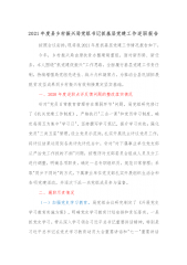 区委书记在2022年抓基层党建工作述职评议考核会议上的讲话2021年,在市委、市政府的坚强领导下,在市委组织部的精心指导下,全区各级坚决贯彻落实党中央决策部署和省市委工作要求,把习总书记来陕考察重要讲话精神融入到了高新发展工作的全过程、各方面,高新区各项工作取得了显著变化,稳增长、促发展、保民生实现了持续向好、稳步提升。但对标省市委党建工作的要求,我们基层党建工作还存在一些共性问题:一是党建主体责任落实压力传导不够,对个别党建重点工作部署、落实、督导不到位。二是抓党建促发展意识不强,还存在把党建和经济发展割裂开来,抓党建和抓经济“两张皮”的问题。三是各领域对党建工作的典型培树不够,还没有形成叫...