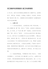 市信访局党建工作述职报告今年以来,市信访局党组以党史学习教育为主线,紧紧围绕全市信访工作总体部署,落实“三个强化”举措,不断推动党建与信访业务工作同频共振、互融互促,让党旗在信访为民服务一线高高飘扬。现将有关情况报告如下:一、强化党组政治思想引领,让党建“有魂”将理论武装作为解决信访工作难题的“金钥匙”,充分发挥党组织战斗堡垒作用和党员先锋模范作用。一是加强领导,彰显“统”字。把组织建设作为第一抓手,落实党组书记抓党建“第一责任人”职责,党组成员一岗双责,认真抓好机关党委改建工作,夯实党建工作基础,制定党建工作责任清单,构建上下同心、齐抓党建的良好运行机制。二是统分结合,突出“融”字。建立统筹...
