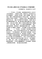 忠诚履职勇于担当锐意改革书写法院高质量发展的辉煌篇章——在法院工作会议上的表态发言下一步,将团结带领全院干警以逢山开路、遇水架桥的闯劲,以破釜沉舟、背水一战的拼劲,踔厉奋发、躬身入局,学深悟透中央、省委政法工作会议、全省中级法院院长会议、汉江法院工作会议精神,一以贯之坚决贯彻执行撸起袖子加油干、苦干实干拼命干、落实落实再落实,在新的征程上干出特点、干出亮点、干出风采。一是抓好执法办案,着力服务辖区发展大局。牢固树立大局观念,紧紧围绕辖区党委政府工作部署,切实履行好维护平安稳定的神圣职责。深入开展扫黑除恶专项斗争,突出重点,依法严惩,准确把握法律政策,确保打准、打狠、打出声威和实效。主动服务三大...