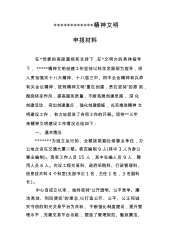 ************精神文明申报材料在*党委的高度重视和支持下,在*文明办的具体指导下,*****精神文明创建工作坚持以科学发展观为指导,深入贯彻落实十八大精神、十八届三中、四中全会精神和兵师有关会议精神,按照精神文明“重在创建,贵在坚持”的原则,围绕转变作风,提高服务质量,不断拓展创建思路,深化创建活动,突出创建重点,强化创建措施,扎实推进精神文明建设工作,有力地促进了各项工作的开展。现将**三年来精神文明建设工作情况总结如下:一、基本情况*******为独立运行的、全额拨款副处级事业单位,办公地点设在交通大厦二楼。核定编制9人(其中3人为参公事业编制)。现有工作人员15人,其中在编人员...