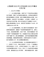 2022年工作总结、2023年工作计划:人民政府2022年工作总结及2023年重点工作计划
