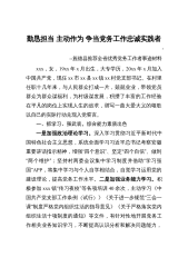 勤恳担当主动作为争当党务工作忠诚实践者---旌德县推荐全省优秀党务工作者事迹材料xxx,女,19xx年x月出生,大专学历,20xx年x月加入中国共产党,现任xx市xx县xx镇xx村党支部书记。在村里任职十几年来,与人民群众打成一片,兢兢业业,带领党员群众为群众谋福利,为村级谋发展,积攒了丰富的工作经验在平凡的岗位上实现人生的追求,谱写一曲大爱大义的颂歌以自己的实际行动兑现入党誓言。一、抓学习、强武装,综合能力素质出色一是加强政治理论学习。深入学习贯彻习近平新时代中国特色社会主义思想,系统全面学习习近平总书记考察安徽重要讲话指示精神,增强“四个意识”、坚定“四个自信”、做到“两个维护”;坚持村两...