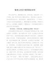 民政局党组书记、局长“五型政府”先进个人先进事迹推荐材料一、聚焦政治过硬,善学善思强化理论武装该同志坚持把政治建设摆在首位,严守党的政治纪律和政治规矩,不断增强“四个意识”、坚定“四个自信”、坚决做到“两个维护”。一是抓住“一个重点”。即把学习贯彻党的十九大和十九届四中、五中、六中全会精神和总书记的系列讲话为重点,把思想认识统一到党的决策部署上来,认真履行职责,切实关注民生。二是加强“两个建设”。即加强支部自身建设和党风廉政建设,充分发挥带头模范作用,筑牢拒腐防变的思想道德防线。三是坚持“三个制度”。即坚持党组中心组学习制度、“三会一课”制度和民主评议党员制度,定期召开党员大会和党小组生活会,...