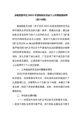 乡镇党委书记2021年度组织生活会个人对照检查材料(四个对照)根据镇机关支部《关于召开2021年度支部组织生活会和开展民主评议党员的方案》要求,我紧扣主题,通过参加机关党支部学习和个人自学的方式,认真学习了XJP新时代中国特色社会主义思想、党的十九届六中全会精神、XJP总书记对xx做出的重要讲话和指示精神等内容。会前,我严格对照XJP总书记关于严肃党内生活的重要指示精神对照党章党规党纪,对照初心使命,结合个人思想和工作实际,深入开展了谈心谈话、广泛征求了班子成员及干部群众的意见建议、认真查摆了自身存在的问题,在此基础上认真撰写了个人发言提纲。一、上年度组织生活会问题整改情况2020年度专题组织...