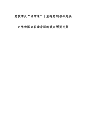 党校学员“两带来”丨坚持党的领导是决定党和国家前途命运的重大原则问题